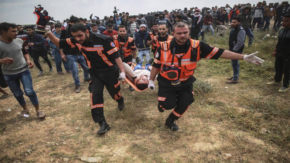 At least 17—and counting—Palestinians were shot dead and more than 1,400 wounded after Israeli army snipers, soldiers and drones attacked thousands of protesters who had flocked to a sit-in near the border fence between the Gaza Strip and the occupied Palestinian territories.