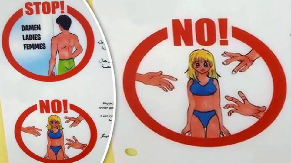 In a bid to prevent sexual assaults by migrants from happening in the summer season, the pool's management decided to place the bizarre signs.
