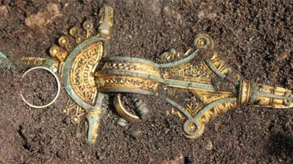 Photo from the excavation of one of five caches of 5th century jewellery found at Sandby borg in 2010. Photo courtesy of Jan-Henrik Fallgren.