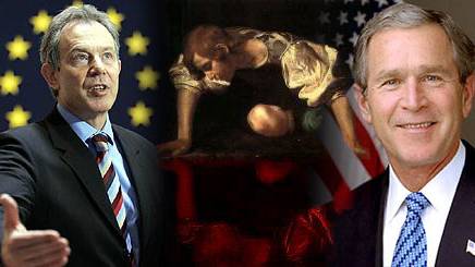 So I do love Bush and Blair because they have shown us the way. They are the light-bearers for the new world, in the same tradition that Lucifer was and is. Synonymous with "Satan", Lucifer's name means "light-bearer" and he was said to be the very brightest in the heavenly host before he assumed the status of a fallen angel. Could it be that it wasn't hubris that toppled Lucifer from his high perch in Biblical mythology, but service? After all, some amongst us need to assume roles that help the collective play out their shadow. As Jung said: "One does not become enlightened by imagining figures of light, but by making the darkness conscious." And so in this vein, Blair, Bush, Lucifer and every other evil-doer on the planet share a tradition of giving us opportunities to make the darkness conscious.