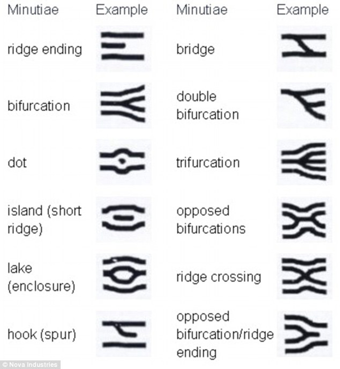They looked at both the level one details, such as pattern types and ridge counts, and the level two details, which are more specific variations such as bifurcations – where ridges split - ridge endings and other structures.