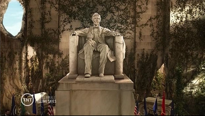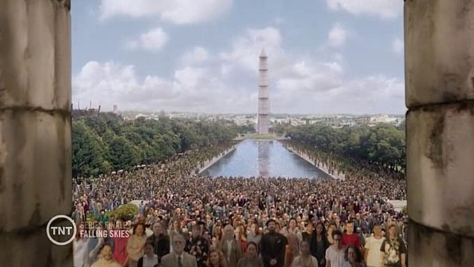 To set the stage, Mr. Tom Mason killed the Espheni Queen. A short time after, he is walking to the podium to give a speech to a multiracial, multicultural audience in the ruins of the Lincoln Memorial.