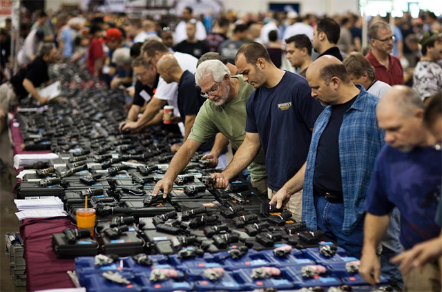 Background checks are on the rise, as customers flock to shops like The Gun Store in Las Vegas.