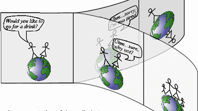 The quantum suicide thought experiment is based on and seeks to prove what has become an increasingly accepted interpretation of quantum physics, the Many-Worlds theory. This theory was first proposed in 1957 by a doctoral student at Princeton University named Hugh Everett III. The theory was scorned for decades until fellow Princetonian Max Tegman created the quantum suicide experiment, which lends support to the interpretation [source: The Guardian].According to the Many-Worlds theory, for each possible outcome to an action, the world splits into a copy of itself. This is an instantaneous process Everett called decohesion. It’s kind of like a choose-your-own-adventure book, but rather than choosing between either exploring the cave or making off with the treasure, the universe splits in two so that each action is taken.