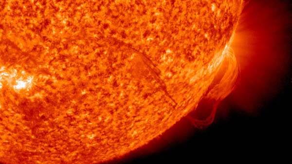 This image is a close-up on the snake-like solar filament arcing up from the sun as seen by NASA’s Solar Dynamics Observatory on Nov. 17, 2010. Credit: NASA/SDO