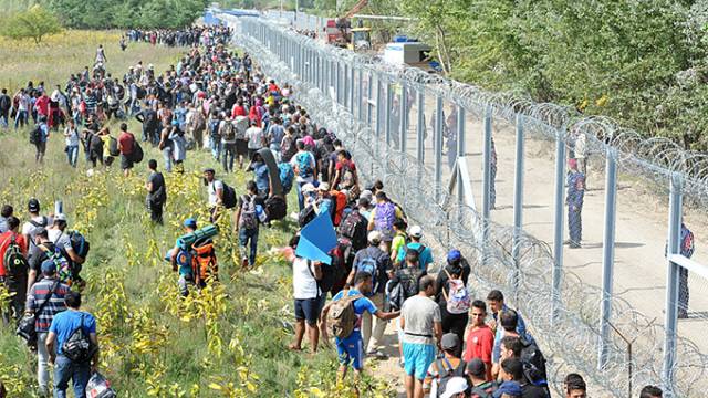 Hundreds of migrants converged at the Hungarian border climbing on the barricades demanding to be let in.