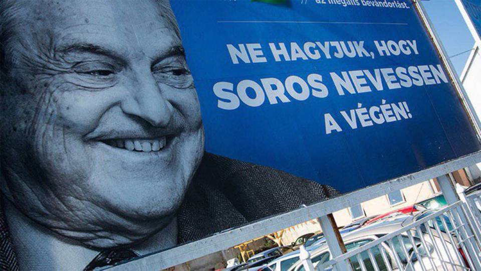An image of the 87-year-old laughing adorned billboard posters alongside a message urging Hungarians "not to let Soros have the last laugh".