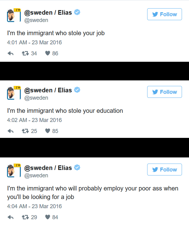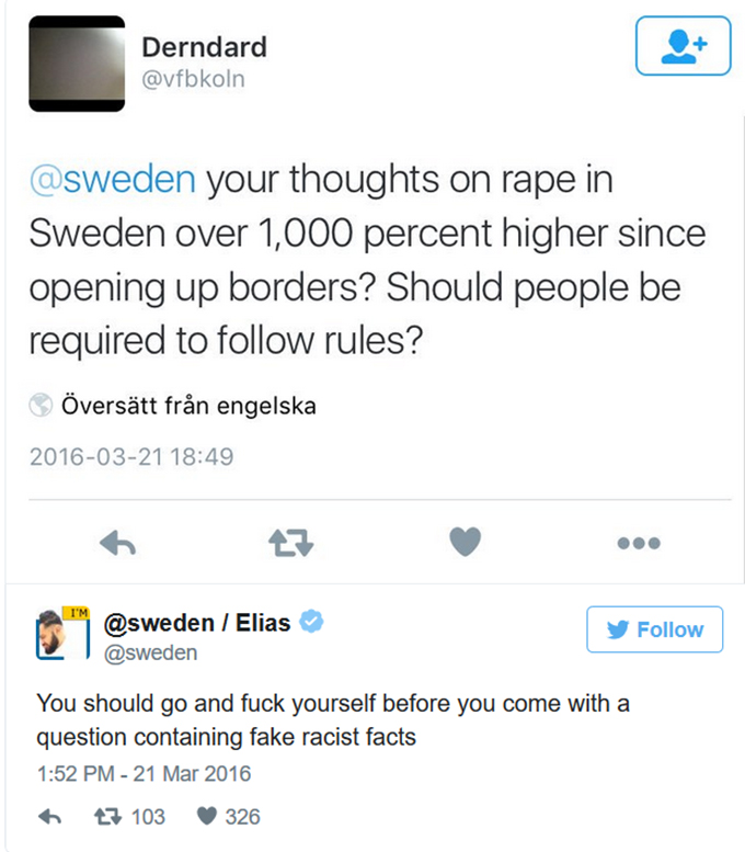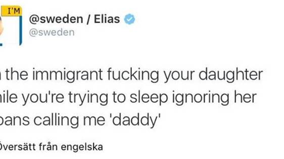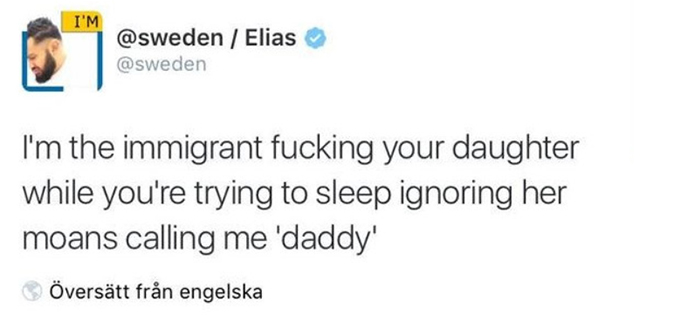 The state-backed Swedish Institute handed control of its official Twitter account over to a Lebanese migrant who then proceeded to tweet, “I’m the immigrant f**king your daughter while you’re trying to sleep ignoring her moans calling me ‘daddy'”.