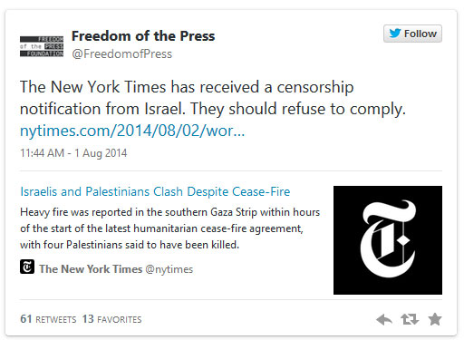 Israel’s Military Censors Demand ’Prior Review’ of NYT’s Gaza Reporting
