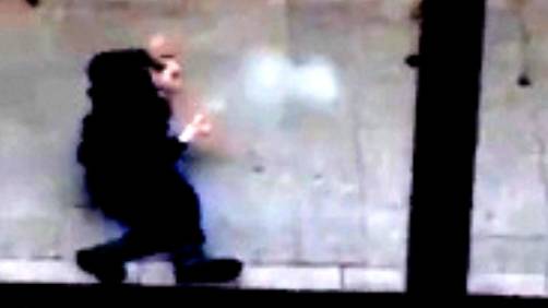 Considering the aim, it looks more like he’s been shot in the back, unless the angle of the one shooting the video distorts the perspective.