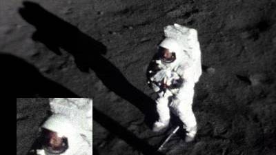 'Right after he collects the sample, he turns towards the lunar module and it's at that time that time, as he's standing there, that we can see his face inside the helmet.'