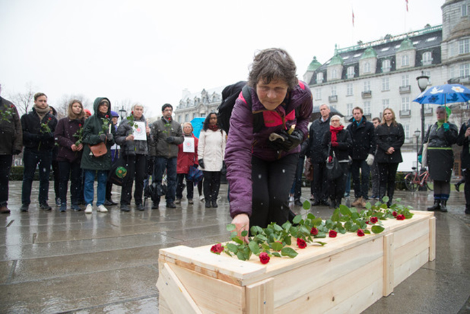 iFaith-based activists in Oslo hold a vigil for the victims of Norwegian arms on 14 April. (Ryan Rodrick Beiler)