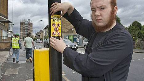 The bright yellow messages daubed on bus stops and street lamps have already been seen across certain boroughs in London and order that in the ‘zone’ there should be ‘no gambling’, ‘no music or concerts’, ‘no porn or prostitution’, ‘no drugs or smoking’ and ‘no alcohol’.