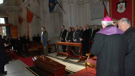 Yesterday afternoon the Grand Master was received with great emotion at Santa Maria del Priorato by his brother, Peregrine Bertie, the members of the Sovereign Council and the Grand Master’s closest collegues. A guard of honour formed by the Military Corps of the Italian Association piped His Highness into the church. The Order’s flag stood at half mast. In the church, funeral prayers in Latin were said over the coffin.