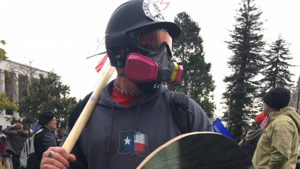 One man, wearing protective gear and carrying a wooden pole and shield, was filmed heroically beating down antifa lunatics in a melee. Nicknamed "Based Stick Man", this individual (real name: Kyle Chapman) was eventually arrested by the police and charged with multiple felonies.