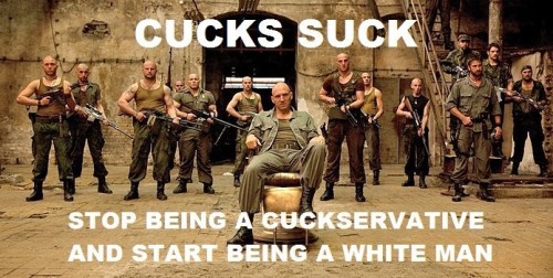 It's not just the cuckservative label, but the witty, mantra-like statements that it is typically paired with, many of which ridicule cuckservatives. Ridicule is a very effective tactic — routinely used in Hollywood anti-White fare, from bumbling Neo-Nazis in Blues Brothers to snooty WASPs in Caddyshack.