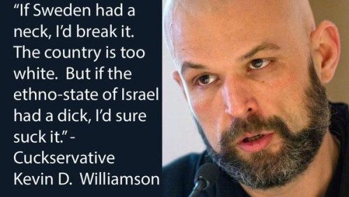Cuckley is the godfather of cuckservatism who thought that being invited to a cocktail party by Barbra Streisand was his ultimate social accomplishment (“When Streisand invited Buckley and his wife to a cocktail party at her penthouse in Manhattan, the whole Buckleyite empire went into Second Coming hysteria”). And of course, he expunged Joe Sobran from the National Review and allowed the neocons to take over. I don’t know much about Kevin D. Williamson, but the idea of “celebrating diversity by prepping my wife’s bull” at the top of the graphic is hilarious. And I figure that if Williamson writes for National Review, the statement is not far-fetched at all as a devastating image of what cuckservatives have to do to be part of the Cuckservatism Inc. Cuckservatives who are part of the neocon foreign policy establishment like John Bolton and Frank Gaffney come to mind.