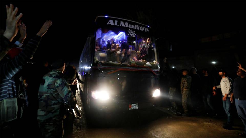 More than 3,000 Jaysh al-Islam militants and their family members have been evacuated from Douma in the Damascus suburb of Eastern Ghouta, as part of Russia-brokered deal which saw the militants' prisoners being released.